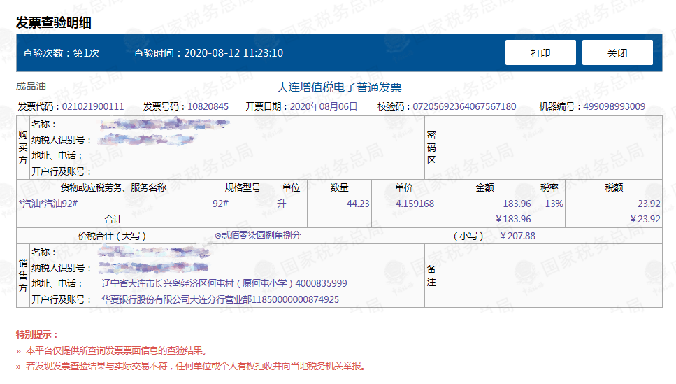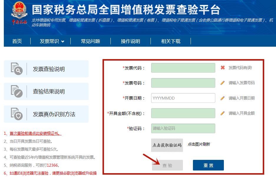 2.每份发票每天最多可查验5次。