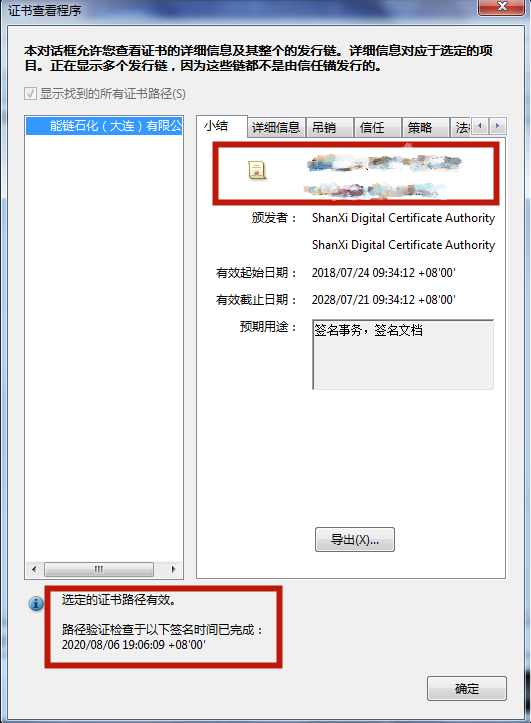 弹出签名验证状态的提示窗口,如下图所示,检查签名的有效性以及是否经过修改。