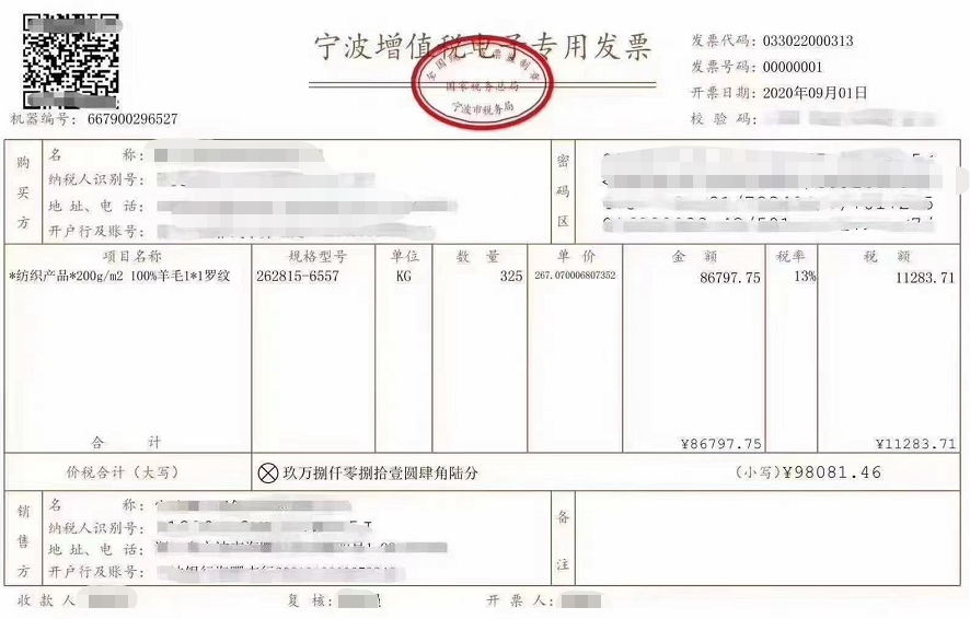 国家税务总局宁波市税务局公告2020年第4号规定,9月1日开始,先行在宁波市海曙区和慈溪市选取部分新办纳税人(以下称“试点纳税人”)开展增值税电子专用发票(以下简称“电子专票”)试点工作,并同时公布了增值税电子专用发票的样式。
