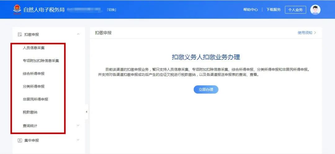 自然人电子税务局扣缴WEB端打破了扣缴客户端在本地电脑上办理业务的限制,更好地匹配中小微企业的办税便捷性诉求,实现大多数企业办理扣缴申报的渠道多样化、便捷化。 【注意】: 1.自然人电子税务局扣缴WEB端暂只支持在职员工(雇员、保险营销员、证券经纪人、实习学生)不超过300人的单位使用,预计人数将超过该限制的单位建议使用扣缴客户端; 2.不支持对2019及以前年度的扣缴申报表和专项附加扣除信息进行操作; 3.不支持数据导出功能; 4.针对存在异议申诉属实,但仍需为其办理扣缴申报的纳税人,扣缴单位需在人员信息采集中发起确认邀请,并通知纳税人在个人所得税APP或自然人电子税务局WEB确认同意后方可办理。 纳税人可在浏览器输入地址:https://etax.chinatax.gov.cn或者搜索“自然人电子税务局”直接进入。 【注意】:为保障纳税人更好的体验,建议使用ie9及以上版本、chrome谷歌或360浏览器等,若使用360浏览器建议切换到极速模式或兼容模式。 也可通过国家税务总局安徽省税务局官方网站首页“自然人电子税务局”模块进入。 有两种登录方式:企业法人、财务负责人以及取得授权人员使用“个人所得税”APP扫码登录或者输入“个人所得税”APP账号和密码登录,登录时会有短信验证码确认。 【注意】:法人、财务负责人或者取得授权人需完成实名注册,其他办税人员需完成实名注册且被授予扣缴管理权限或者扣缴办税权限才能登录。 登录后点击【单位办税】。 那么, 自然人电子税务局扣缴WEB端 如何办理个人所得税 综合所得申报业务呢? 1.进入【扣缴申报模块】 2.人员信息采集 点击【人员信息采集】,进入界面。可以进行人员信息添加或者修改。 3.专项附加扣除信息填报 点击【专项附加扣除信息采集】,进入界面。 4.综合所得申报 进入【收入填写】子页面。 【注意】:存在个人所得税减免、商业健康保险税前扣除、税延养老保险税前扣除、个人所得税公益慈善事业捐赠扣除情形的,需要填写附表。 进入【附表填写】子页面。 进入【申报表报送】子页面,点击【报送】,报送申报表。 5.税款缴纳 点击【税款缴纳】,进入页面。勾选相应记录后点击“立即缴款”。 选择支付方式后点击【立即支付】,即可缴税。